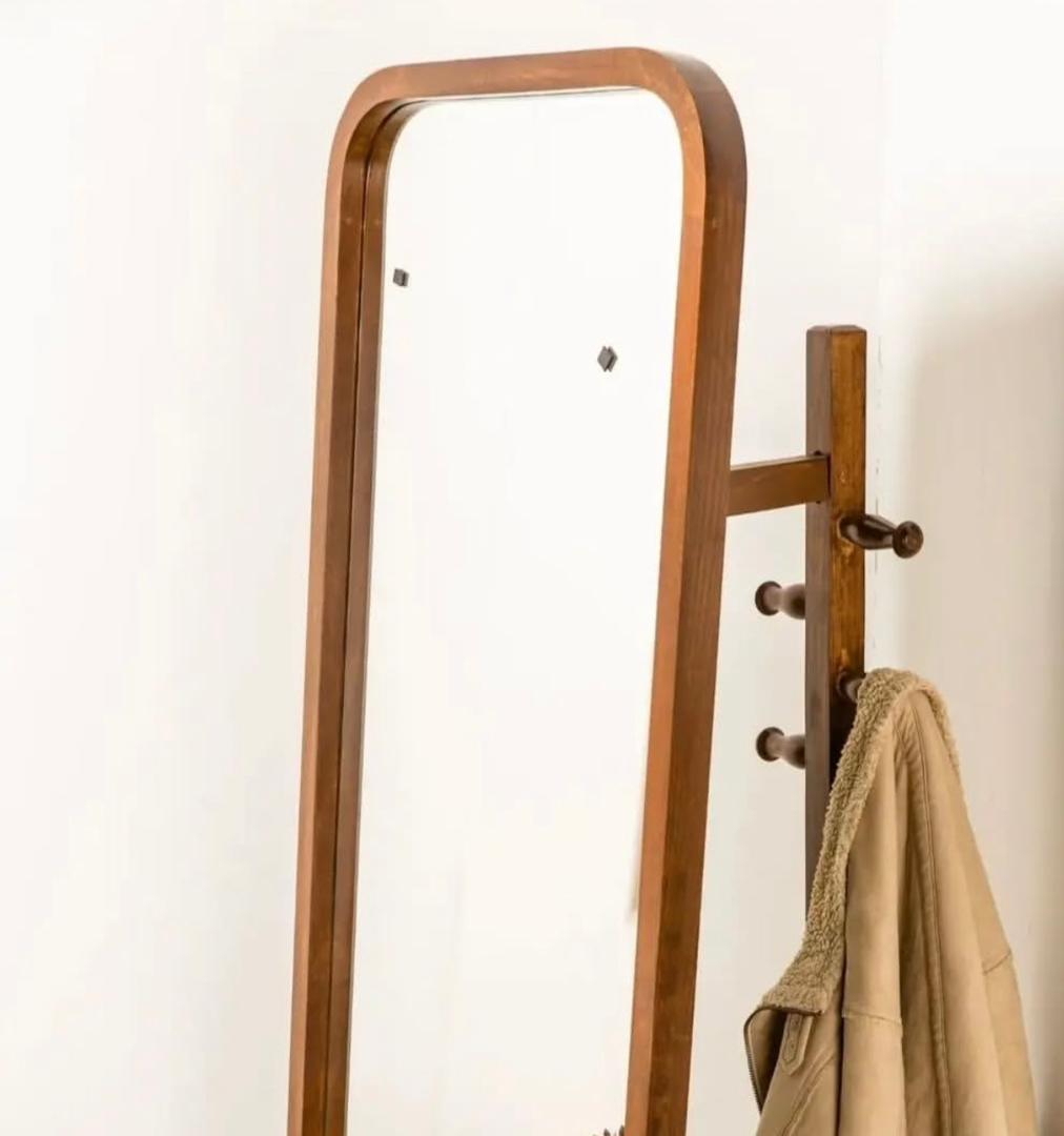 این آینه قدی با طراحی ساده و مینیمال، علاوه بر زیبایی، کارایی بالایی برای دکوراسیون منزل دارد. قاب چوبی محکم، استند لباس و قابلیت جابهجایی آسان، آن را به انتخابی عالی برای اتاق خواب یا ورودی خانه تبدیل کرده است.